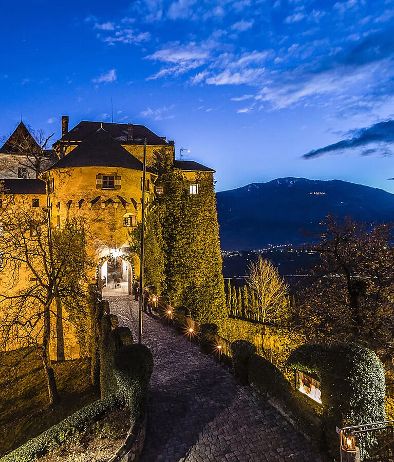 Das Schloss ist Teil des Dorflebens und wer durch die Gassen von Schenna schlendert, nimmt seine Verbundenheit umgehend wahr. Abends, während unten im Zentrum das Leben pulsiert, breitet sich leicht erhöht auf dem Schlosshügel unter stimmungsvoller Beleuchtung eine besondere Ruhe aus. So wird die Verbindung von Gegenwart und Vergangenheit, von Alltag und Geschichte, spürbar. Ein Zusammenspiel, das das Meraner Land auf einzigartige Weise prägt.