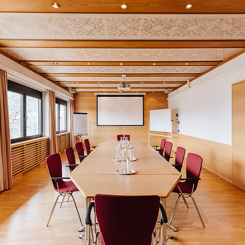 Hell und ruhig präsentiert sich unser Seminarraum im Stammhaus. Große Fensterflächen lassen viel Tageslicht herein und schaffen eine offene, angenehme Arbeitsatmosphäre. Mit rund 50 m² bietet der Raum ausreichend Platz für Workshops, Strategietage und kleine Retreats mit bis zu 20 Personen in parlamentarischer Bestuhlung oder bis zu 30 Personen in Kinobestuhlung.