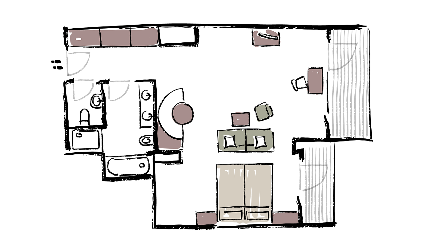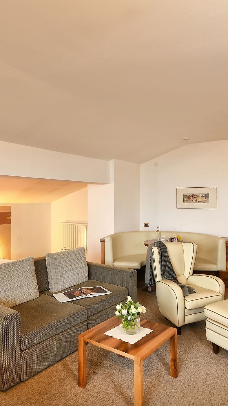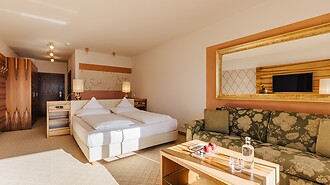 Ein elegantes Doppelzimmer mit leichter Dachschräge und einem Balkon, der mit Blick nach Meran die schönsten kurstädtischen Urlaubserinnerungen prägt – das ist das Doppelzimmer Juval. Exklusives Nussholz-Mobiliar und hochwertige Materialien machen es zu einem unvergesslichen Wohlfühl-Juwel in der obersten Etage des Stammhauses!