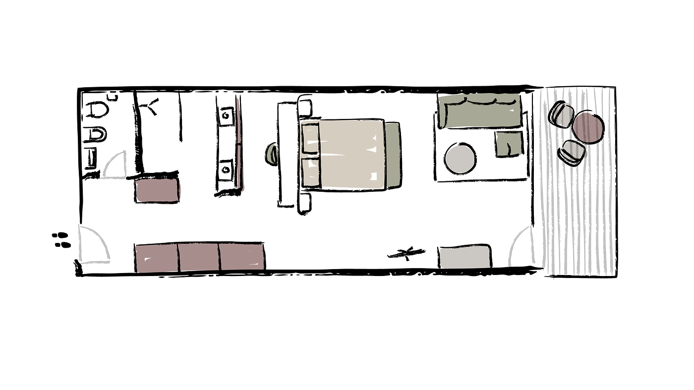Warm berry tones, expansive views of the peaks, a comfortable balcony, a velvety soft sitting area and a temperature-regulating climate ceiling, combined with a modern lighting concept and wooden floors, ensure an all-round sense of well-being. This double room is ranked right at the top for relaxation! Dogs are not allowed in this suite.