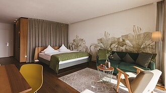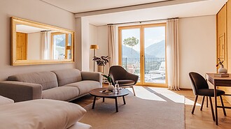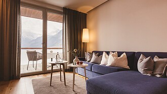Un’elegante camera doppia con caratteristico soffitto spiovente e balcone con vista mozzafiato su Merano per rivivere le storie scritte durante la vostra giornata: ecco l’incanto di Juval. Situato all’ultimo piano della Casa Principale, gli esclusivi mobili in legno di noce e i pregiati materiali lo rendono un inconfondibile e accogliente gioiello del nostro hotel!