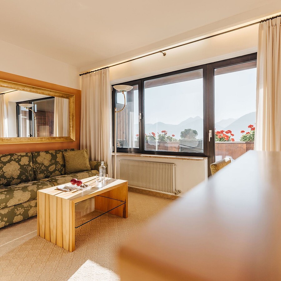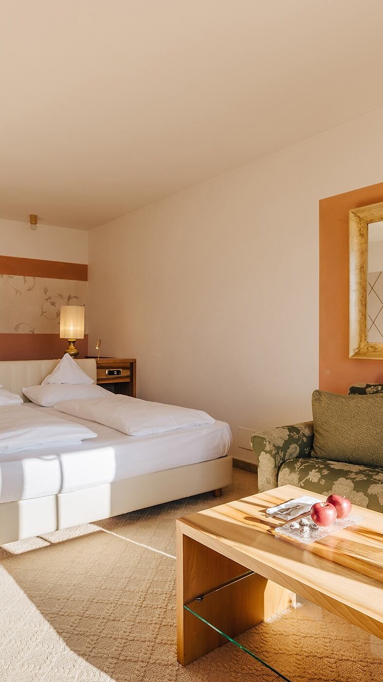 Spazi di ampio respiro, tonalità calde e avvolgenti e l’eleganza dei mobili in noce donano a questa camera un’atmosfera accogliente e di benessere. Situata a pochi passi dal ristorante, dal bar e dalla reception, offre un divano letto aggiuntivo per la massima comodità degli ospiti. Le camere di questa categoria sono parzialmente dotate di parquet. L’ampio balcone con vista su tutta la Valle dell’Adige, infine, è la cornice ideale in cui ripercorrere le emozioni della giornata trascorsa e sognare nuove avventure!
