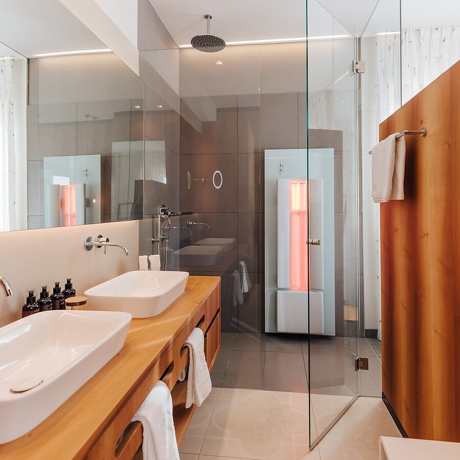 Inondata di luce e aria grazie alle ampie vetrate, questa suite è un sogno con vista su Merano e la Valle dell'Adige in cui lasciarsi avvolgere da un'atmosfera di puro benessere e relax. Impreziosita da lettini prendisole, angolo relax e vasca da bagno sul balcone, la suite è dotata di un climatizzatore a soffitto per il massimo comfort in ogni stagione dell’anno. Dotata di divano modulare, caminetto elettrico con effetto fiamma, vetrata panoramica e numerosi altri comfort di lusso come un dondolo sospeso, questa suite è un'oasi di pace e leggerezza per l'anima. I cani non sono ammessi.