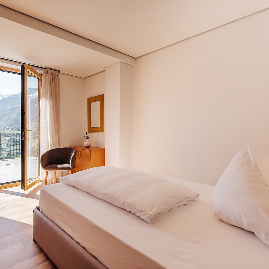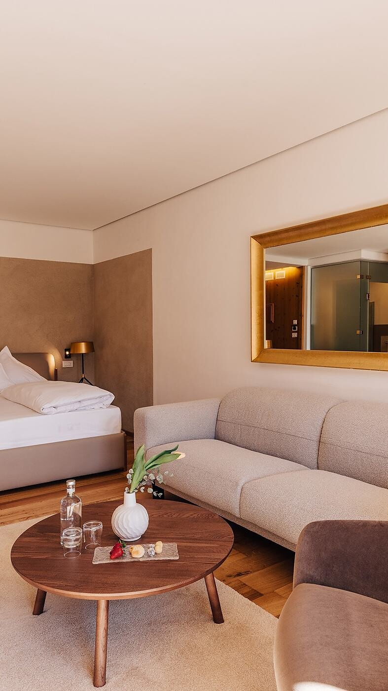 Lasciatevi ammaliare da queste suite con balcone, terrazza o ampia loggia completamente arredata e due camere da letto, di cui una con letto matrimoniale e una con letto alla francese. Grazie agli ampi spazi, la Rosen Suite è ideale per le famiglie. I materiali di prima qualità, i pavimenti in larice locale, i mobili di noce e ciliegio e mobili di design italiano sono i fiori all’occhiello di questa camera. I climatizzatori a soffitto assicurano temperature piacevoli durante tutto l’anno. Lo sguardo spazia libero e ampio fino al Gruppo Tessa. I cani non sono ammessi.
