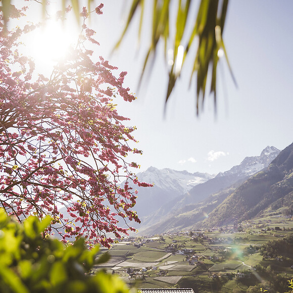 Un mondo a sé stante, un’oasi che avvolge tutta la struttura e accoglie gli ospiti con un verde abbraccio. Un giardino in cui lo stile alpino e quello mediterraneo non coesistono semplicemente, ma si fondono l’uno nell’altro: qui, palme, ulivi e cipressi si alternano a erbe alpine, pietra naturale e acqua di sorgente cristallina. E tutt’intorno, la vista a perdita d’occhio sulla valle e sulle montagne, che ha reso famoso il nostro hotel panoramico in Alto Adige.