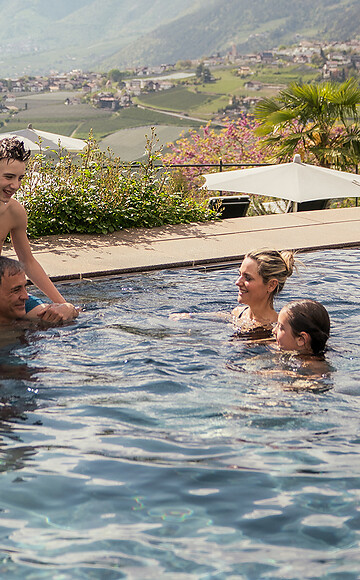 Due piscine, tre saune delicate, tanti angoli accoglienti per il relax, spazio per sdraiarsi e leggere, sia all’interno che all’esterno. La FamilySpa del nostro wellness family hotel di Merano non è un parco acquatico, ma uno spazio che riunisce e avvicina le famiglie. Un luogo in cui grandi e piccini possono godersi il relax, ognuno a modo suo.